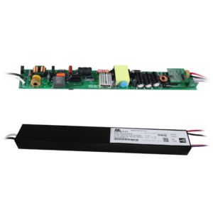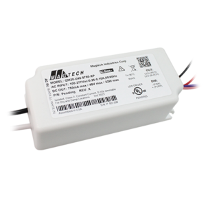 A slim 0.6" LED driver with low flicker, 4-in-1 dimming, CC/CV compatibility, NFC programming, 2.5kV protection, and UL/CE compliance. Available in open frame or mylar wrap.